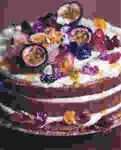 Spread 1/3 of the ricotta cream over the cake and then swirl 1/3 over the mashed berries into the cream. Crumble 2-3 meringues over top. Add a handful of fresh chopped strawberries, raspberries, orange slices and passion fruit.
