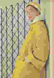 "Here is one of winter’s prettiest fashions—the coloured coat. It is designed to look brilliant against the background of grey winter days and scheduled to travel non-stop into spring’s sunshine."